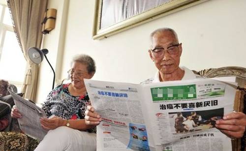 ▲ 凌锋教授母亲王梅英(85岁)和父亲刘轩亭(95岁)正在读报。