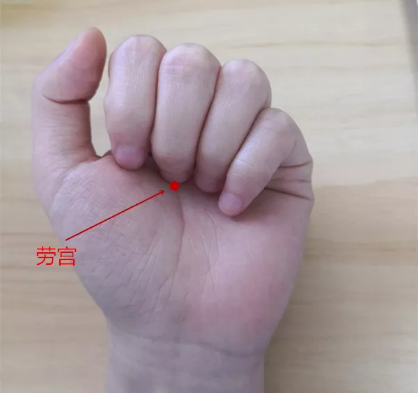 ![]() 劳宫穴(在手掌心,当第2、3掌骨之间偏于第3掌骨,握拳屈指时中指尖处) ![]()