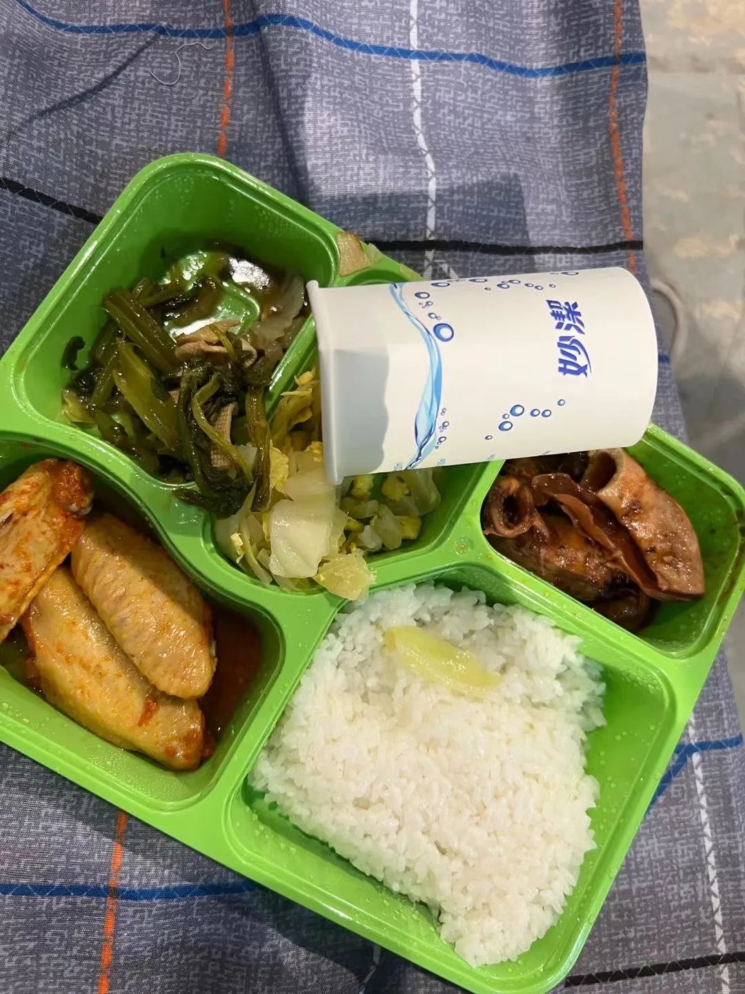 世博源方舱的伙食完全免费,说实话真的不错,早餐必有牛奶,中晚餐两荤两素。