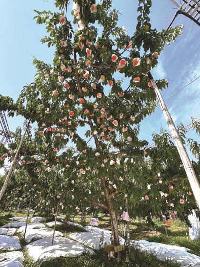 解放日报记者 李成东 在上海青浦的哈玛匠果园,一颗水蜜桃卖88元,诸多商超还一桃难求,成为名副其实的“期货”。 两年前,记者曾采访过这个果园。当时,哈玛匠果园准备进一步打响品牌,将上海桃子卖到长三角、卖到全国。 如今,记者再次探访,发现88元一颗的高价桃仍供不应求,仅供应上海地区都不够。同时,哈玛匠果园的理事黄伟也兑现了自己的诺言,将桃子种植的上海模式推广到浙江、安徽等全国23个省市地区。 记者观察到,当传统桃种植还困于采摘周期仅20天的瓶颈中时,哈玛匠果园已悄然完成从“田间实验室”到“产业路由器”的蜕变——这里不仅种出高品质的专利水蜜桃,在上海农科院支持下,以科技创新为支点,将桃子采摘周期拉长到100余天,撬动了一条覆盖技术输出、标准制定、农户赋能、三产融合的现代农业产业链。 “这里每一颗果子,都是按照论文里的数学模型种出来的。”杭州富阳的种植大户高增新尝试了哈玛匠果园种植模式后,一斤以上的特级桃产量大增,能卖到30多元一颗,实现了增收致富。他现在既是果园经营者,也是哈玛匠品种试验的“数据合伙人”,正在将科学种植模式推广到桐庐等更多地方。 对每棵桃树做“职业规划” 在华为上海练秋湖研发中心对面,无人机航拍下的哈玛匠果园,呈现令人惊叹的数学之美——每株桃树严格遵循60度开角,形成错落有致的“绿色穹顶”。这种颠覆传统的两主枝自然开心形树形,藏着黄伟从日本带回的产业洞察。 多年前,一次偶然的机会,黄伟结识了日本的“桃仙人”——日本山梨县果农有贺浩一。在对方的启发下,他投身种桃事业。 “目前世界95%以上的水蜜桃栽种品种均直接或间接来自上海,但国内桃产业产量大,品质却不高。”黄伟告诉记者,回国后投身农业的最大动力就是——专注品质,培育出“全世界最好吃的桃”。 将“靠天吃饭”的农业种植细化为可量化的一套科学标准,是黄伟选择的道路。 在上海农科院指导下,黄伟探索“两主枝自然开心形”种植法,把果树种成“专利矩阵”。在这种种植模式下,桃树排列有序,树与树之间留有充足的空间。每棵树的树冠呈圆盘状,果实集中生长在离地面两米左右的高度,枝头上的桃子分布均匀。 “与传统果园密集种植来提高产量不同,我们这种方式能让每一根枝条都充分接受阳光,提高光合作用效率,有利于果实生长。”黄伟说,一棵桃树理想的出品数量应该控制在500颗以内,从而打破传统桃园“密植低效”的魔咒。 “智慧农业+设施农业”模式,是哈玛匠果园另一优势。在哈玛匠的试验田里,技术人员正对着桃树调试反光膜,利用这一工具能够有效提升桃子的糖度以及色泽外观。 除了广泛应用反光膜提高果实品质,农场还引进生草覆盖改良土壤、精准测土施肥等一系列先进技术,实现水肥管理的精准控制。 “我们每棵桃树配备传感器,能实时监测数十项生长指标,未来有望引入数字孪生系统。”据黄伟介绍,哈玛匠果园里的每株桃树都有专属成长档案,由技术员对桃树做“职业规划”,“花芽分化期控氮补硼,膨大期精准补钾,就像给运动员定制训练计划。” 在去年的几次台风天气中,哈玛匠果园的“智慧农业+设施农业”模式大显身手,由于提前数小时启动防护预案,避免了上百万元的损失。 破解“集中上市魔咒” 桃产业发展的最大拦路虎,就是桃子的采摘周期问题。传统模式下,桃子的采摘周期只有20天,大量桃子在短时间内集中上市,价格卖不出不说,一旦滞销会造成巨大浪费,桃农也利益受损。 “大家都知道水蜜桃一个星期卖不掉的话就会烂,上海的桃都是7月15日出来了,8月5日结束了,采摘期仅20天,无法支撑行业健康发展。”黄伟说。 但在哈玛匠的“桃宇宙”中,早熟的姬小夏金阳5月泛红,晚熟的桃梦香9月飘香,70多个品种接力演奏长达100天到120天的甜蜜交响,破解了“集中上市魔咒”。 这背后的时空密码就是科学育种,多品种培育。哈玛匠果园面积不算大,但品种多达70余种。相比上海一般桃子7月底至8月中旬的上市时间,这里桃子的成熟期从5月20日起,可持续至9月20日,且每个月都有2—3个特优品种成熟,极大延长了桃子的品尝期,重构桃产业生物钟。 好的土壤才能种出好的水果。2011年前,哈玛匠果园土壤有机质含量1%,现在上升至3%(地面下30厘米)。“土壤里,藏着中国桃业复兴的密码。”黄伟表示,土壤有机质含量是培育桃树的关键。 在建园初期,黄伟清理出1000多车塑料垃圾,制定“乱扔罚款”铁律。他还打造了一条有机质特供链,定制羊粪肥,不断压豆饼、花生,保留生草改良土壤,形成“草与树”的共生哲学。 分拣进行“高考式选拔” 除了科技,一颗匠心是农业发展的必要条件。 在浦东新区的某个农业合作社,分拣线上的桃子正经历“高考式选拔”——糖度、果径、着色度等多项指标实时监测。这套由哈玛匠输出的标准化体系,正在重塑上海桃业生态。 据介绍,哈玛匠果园从育苗到采摘的每个环节都严格按照规范进行管理。这种严格的管理确保了果园桃子的高品质。随机测试显示,哈玛匠果园的桃子糖度普遍在13至14度以上,远高于市场上普通早桃8度左右的糖度。部分品种在完全成熟后,糖度甚至能超过20度。 桃的整个生长期,会有3—4次疏果作业,为提高桃子的品质,果园对每一棵果树出产的果实都有数量和质量上的控制,“我宁愿要300