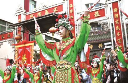 在广东汕头市潮阳区,西门女子英歌队在街头表演。 新华社 发