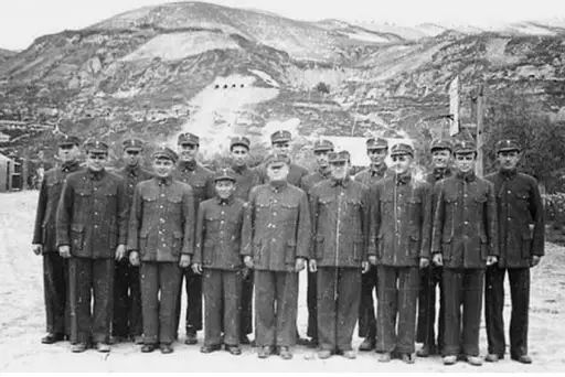 ◆迪克西使团的成员穿着送给他们的土布军服在延安合影。