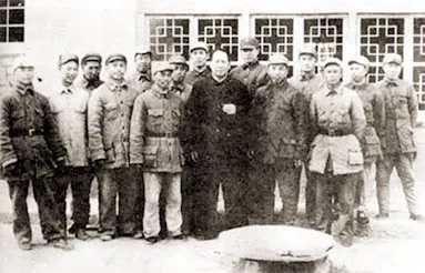 ◆1946年王震率359旅从中原突围后返回延安后与毛泽东合影。右五为王震。