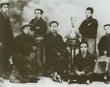 ◆1921年,陈毅(左四)、陈孟熙(右二)、陈修和(右一)。