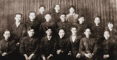 ◆1929年冬在日本东京与留日同学合影(后排右一为袁殊)。