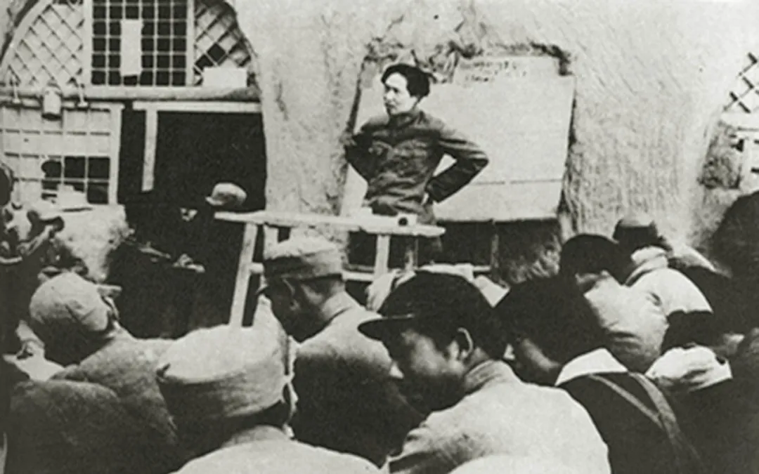 ◆毛泽东非常重视理论联系实际这一马克思主义学风的养成,强调必须始终坚持把马克思主义与中国实际紧密结合起来。图为毛泽东在为陕北公学学员讲课。