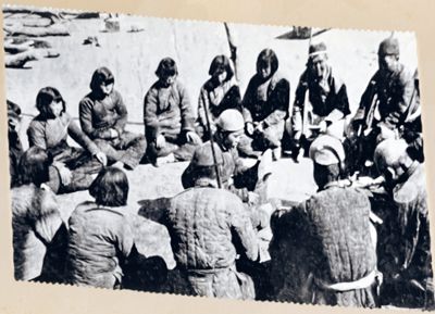 抗战期间,妇救会组织青年妇女和民兵学习时事。图片由《解放军画报》资料室提供