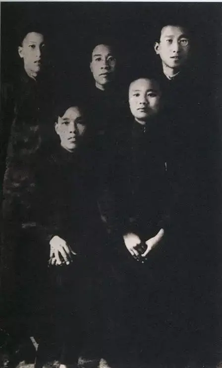 △上海社会主义青年团外国语学社团员合影(后排中为俞秀松,前排左为罗亦农)