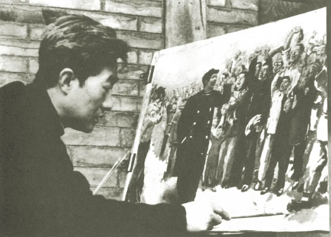 ◆徐悲鸿正在创作《毛主席在人民中》。
