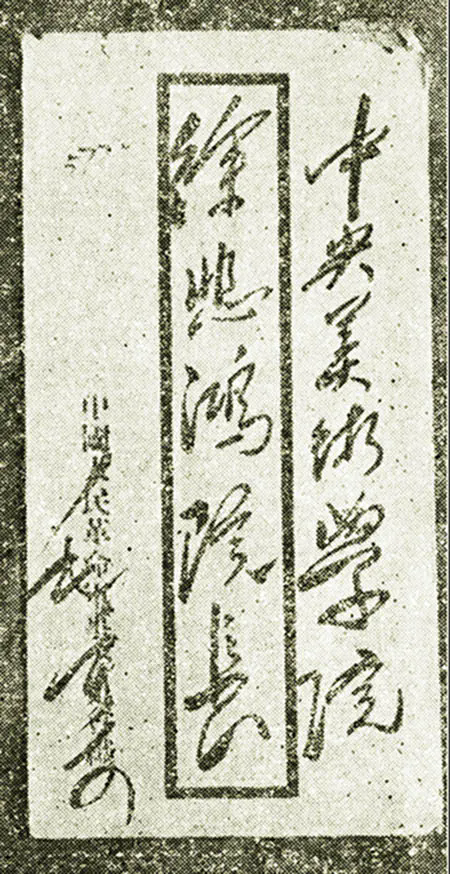 ◆1949年11月29日,毛泽东应徐悲鸿请求题写校名,并复信。