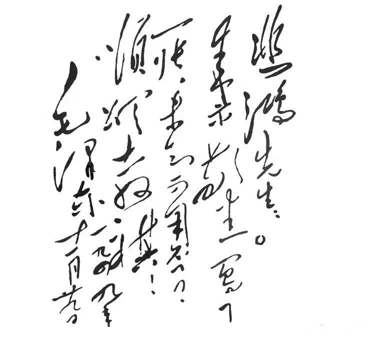 另一幅是巨幅油画《毛主席在人民中》。这是他对毛泽东深厚情感的体现,经过较长时间的构思和创作,想在毛泽东六十大寿时献上。画上书写一联:“言论文章放之四海皆准;功勋伟业长与日月同光。” 可惜,毛泽东寿辰还没到,徐悲鸿就因脑溢血复发,于1953年9月23日逝世。 周恩来代表毛泽东亲往吊唁,并向其家属转达了毛泽东的慰问之意。 后来,徐悲鸿的夫人廖静文,按照徐悲鸿的遗愿,将这两幅祝寿画献给毛泽东。 毛泽东没有忘记徐悲鸿,也惦念着他的家属,可谓情长谊久。这年的12月,毛泽东派秘书田家英,持信去看望廖静文,极表关怀之情。 静文同志: 十月间的信和徐先生所绘奔马,早已收到,甚为感念。兹派田家英同志询问你的情况,如有困难,请告知为盼! 顺致 敬意! 毛泽东 一九五三年十二月十三日 廖静文读信后,感动得哭了,并请田家英转达她对毛泽东的诚挚谢意。 ![]()