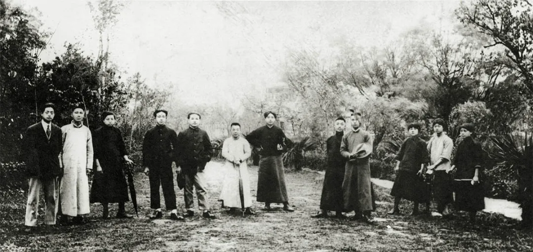 ◆1920年5月,新民学会部分会员在上海留影,左七为毛泽东。