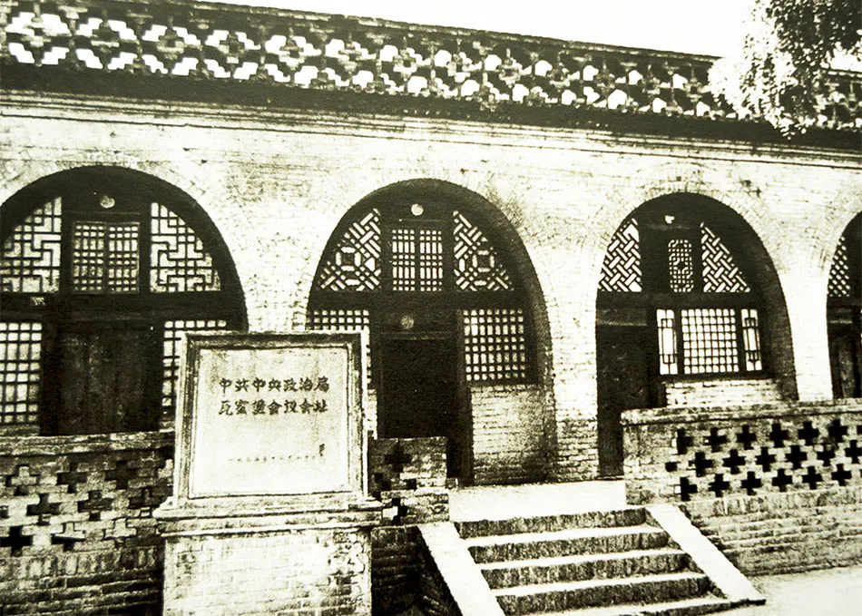 ◆1931年11月1日至5日,中国共产党苏区第一次代表大会在瑞金召开。会议在“左”倾冒险主义者的领导下,对以毛泽东为代表的正确路线进行指责,排挤他对党和红军的领导。主席台右四为毛泽东。