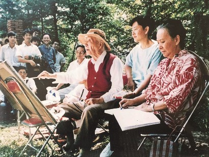 1988年,刘海粟最后一次登上黄山写生,身边是妻子夏伊乔与女儿刘蟾(右二)。 图片由受访者提供