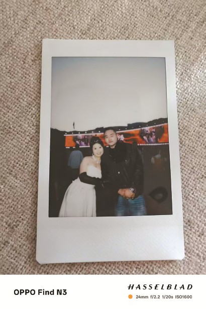 时书霖和爱人在音乐节上拍摄的婚纱照。