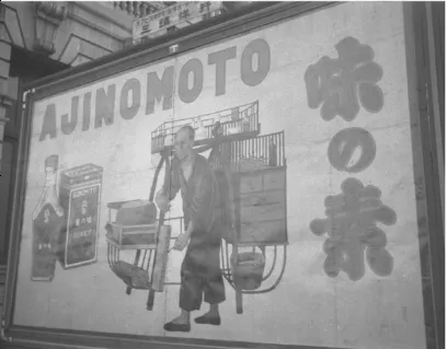 “高脚式的担子”,即马头担。而“低矮式的担子”,为“粤人”也就是广东人所挑的。 这个“低矮式的担子”是怎样的一个制作样式?笔者查检到二幅30年代上海“味之素”调味品牌的广告图片:一幅是由美国摄影师拍摄的马路广告牌,图案是以马头担为主体。另一幅是登载在《申报》上的广告图,在一副低矮式的担子下有广告语:“买馄饨的说:‘我自从馄饨里放了味之素,每天可多做两块钱生意’。”这广告语提示了我们,这副简单轻便的担子就是馄饨担,而且就是广东人挑的低矮式的馄饨担。这个调味品为求经济利益最大化,充分突显了平民化意识,在其广告设计的多种图案中就有采用普通大众最喜欢的馄饨担作为主体对象,并将二副不同的馄饨担分别制作成了不一样的广告图案,为我们后人留下了认识广东人馄饨担的大概图像。 ![]()