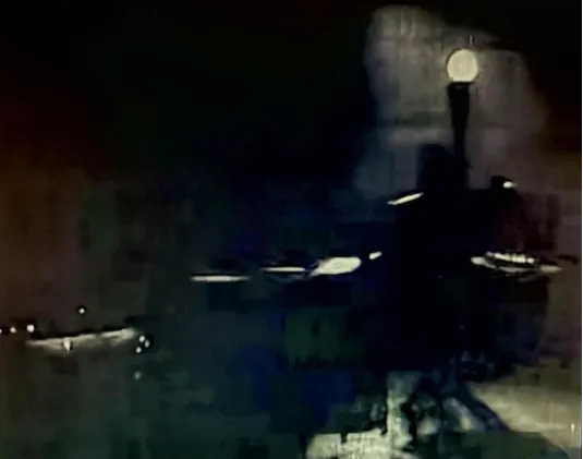 昏暗的路灯下依稀可辨的低矮式馄饨担 电影《遥远的爱》截图