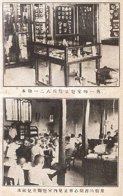 《新民》杂志(上海市立民众教育馆馆刊)一九三二年第二期刊发《本馆现况一斑》之“一二八”战迹展览室、儿童阅览室