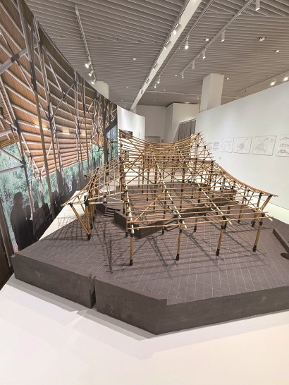 展览现场复原了何陋轩的主体竹结构。参观动线设计处处呼应方塔园的空间体验。