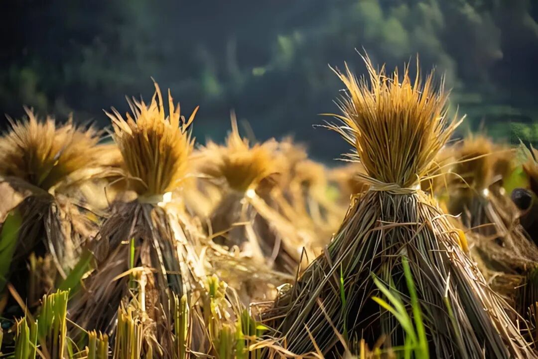 ![]() 二那时,收割水稻是最繁忙的农活之一,凡是能够挣工分的男女老少必须全员出工。割稻、打稻、收稻谷、收稻草等各项工序有条不紊。家乡的方言把割稻叫作杀禾,杀禾是水稻收割中第一道工序。为了在打谷机上脱粒方便,也为了完整的收割稻草,杀禾的镰刀必须挨着地面将每一蔸水稻整体割下来,绝不会像收割机那样留下高高的禾蔸。收稻草是一项既重要又繁琐的工作,第一步是锁草(被锁紧成束的稻草像一个倒立的丫字,又叫锁草拉),锁草还是一件技术活,只见熟练的老农民随便捡几根稻草为绳,双手从打谷机两旁的稻草堆上捊一把稻草在地上墩齐,草尖在上,扎绳在草尖的下方绕一个圈,把扎绳的头压入稻草中间,另一只手握住扎绳的尾端一扯,草就锁得铁紧,然后提着草拉在手上一个旋转,让草拉底部像舞女的裙子一样张开,就势一抛,草拉就稳稳地立在田间里,交给太阳晒干。看事容易做事难,我开始学锁草拉时不是扎绳弄断,就是草拉老是锁不紧,一抛就散,出了不少洋相。草拉晒干以后,第二步就是打捆、提两个草拉平放在用两股稻草连结的扎绳上面,头尾对齐后用膝盖抵住稻草尾部,双手用力扎紧,就成了一个稻草或者叫作一捆稻草,如此类推,直到将所有草拉都捆绑完毕,再挑到村后的山岗去砌草树。 三砌草树是稻草收纳工作的最后一步。草树分为有芯草树和无芯草树两种式样,有芯草树就是选一棵笔直的枞树,把从田野里挑到山坡的稻草,以草尖朝里,草脚朝外的方式围着枞树砌一个直径四五米大小的圈,稻草一层层垒上去,边垒砌边用双脚踩紧,草树中间的稻草得纵横交错地摆放,头压尾,尾压头,不能留任何空间,目的是增强草树的稳定性,防止坍塌,草树一般砌四五米高一棵。无芯草树的垒砌方法与有芯草树相同,不同的是垒砌之中用一根竹扦担(一种专业挑草的长长的圆形扁担)代替枞树为芯,竖起来做为砌草树的中心点,草树一层层砌高,竹扦担也不断往上拔高,草树完工以后再把竹扦担抽出来,关键点是草树的树冠要盖得紧凑严密,否则雨水漏进草树,稻草就沤坏了。四宋代诗人孔平仲在《禾熟》一诗中有过“老牛还了耕耘债,啮草坡头卧夕阳”的精彩描述。其实在艰苦的年代里,耕牛和人类一样,从事繁重体力劳动的同时,经常食不果腹。我所在的村庄由于田多肥少的原因,每年都要持续不断地刨草皮烧火木灰,用草皮沤肥等,草皮生长的速度快不过村民的锄头,山坡和田埂以及村道都被刨得光秃秃的,能够提供给耕牛啃食的青草少得可怜,耕牛们“啮草坡头卧昔阳”是一种奢望,它们卸下犁铧之后,只能啃食干瘠的稻草。岁月里,牛儿和稻草有一个深深的情结:牛栏里垫的是稻草(稻草还可以同时蓄积牛粪做肥料);冬季里牛身上盖的是稻草;一年四季耕牛进食的主粮还是稻草。“死牛不罢草”这句农谚是对耕牛最真实的写照,耕牛临死之前,嘴里仍然嚼着稻草。村里剐牛的老屠夫们剐下来的牛肉,都得用稻草垫着,说是为了牛肉不会走味。 五“少来青青老来黄,几番锤打编成双,送君千里终有别,将奴抛弃路一旁”。这是一则迷语,迷底是草鞋。草鞋绝大部分都是用稻草编织而成的。我见过村妇们打草鞋,家庭主妇们一般都会这项手艺。草鞋的纲绳叫作捻(音),打草鞋前得先把捻搓好。捻的材料必须要用柔软且韧性极好的糯谷草芯子。生产队每年都要种植一定数量的糯谷,为打糍粑和打草鞋提供原料。村妇把糯谷草的芯子一根根抽出来,然后四根四根草芯相接,用双手搓成一根根一米多长,比筷子还要小点的捻。将一根捻折成四段就是草鞋的纲绳,纲绳的一端挂在屋柱上拴着的一个木钩上,另一端则系在板凳上坐着的村妇腰间,村妇将一根根稻草在纲绳上来回缠绕,一小时左右就可以打出一只草鞋来,手巧的村妇一天可以打若干双草鞋。我们的祖祖辈辈都是穿着草鞋走过来的人。穿草鞋的挑夫们在翻山越岭的古道上艰难谋生;穿草鞋的红军走过爬雪山、过草地的万里长征;穿草鞋的民工在水库工地上把无数的大坝一层层垒高;穿草鞋送公粮的男女老少们把国家的粮库一个个灌滿。可以说,草鞋是千百年以来国人不可或缺的伴侣。有底无面的草鞋虽然身份卑微,却能够为双脚提供柔软舒适的穿着感,脚趾头可以不受限制地自由舒展。草鞋是祖辈的传承,也是历史的见证。六曾经,农村里每个家庭的床垫基本上都是稻草,城里人之需得去乡下讨要或者购买。我青少年时代睡过的所有床铺,百分之九十以上都是以稻草为垫。不管是那种简单到没有蚊帐支架的捺(音)巴床,还是富裕家庭里雕花嵌镜的棱玻床,都有一个共同的特点,就是床的空间容量大,床面子足有一尺多高,其目的是为了多放稻草。稻草铺床前有个讲究,首先得晒得焦干,然后用扁担棍棒等工具把稻草再做一次敲打,要将遗漏在草上的每一粒稻谷和秕谷都抖落干净,防止在床上发霉,以及遭鼠虫啃咬。稻草必需是横着铺床,草尖草脚均匀交叉,抖松后一层层铺开,直至铺滿床面。条件好的家庭可以在稻草上面加盖一床棉絮,许多贫困家庭里,直接将床单盖在稻草上就寝。稻草柔软舒适,透气性好。在田间劳累了一天的人们,洗漱后躺在蓬松的稻草床上,头下枕着可以随便调节高低的荞麦壳枕头,稻草沙沙的磨擦声和着好闻的清香味袭来,会给浮躁的心灵提供安抚,很快就进入梦乡。这种感觉,现代的席梦思床是没法儿可比的。时