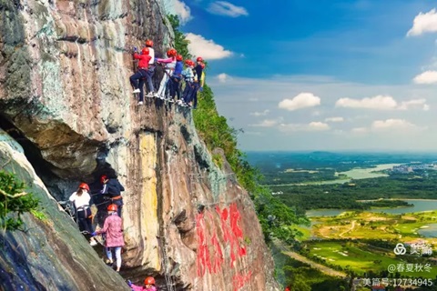 白石岭丛林飞越分为A、B两条线路。 A线适合1.2米(含1.2 米)以上身高的小朋友及成人体验,体验时间约30分钟,能帮助提升小朋友克服困难、互帮互助、挑战自我的心理能力。同时也能增进家长与孩子之间的亲子关系。 B线适合1.5米(含 1.5米)以上身高的青少年及成人,挑战时间约60分钟,此线路十分考验挑战者的协调性、爆发力、肌肉耐力及核心力量等。 我是不适合挑战这项活动,岁数大不说,还比较胖,真出现什么幺蛾子,那就麻烦了,现在只能看着年轻人挑战极限。 植被资源 白石岭景区植被为自然次生森林类型,拥有丰富的植被资源,具国家级和省级保护植物有海南大风子、黄花梨、蝴蝶树、蕉木、白桂木等;具药材价植较高植物有岭南山竹子、山乌桕、破布叶、黄桐等;具景观奇树有长在岩石边的“千年古树”,树心早已腐烂,树皮也已洞穿,却能耸立不倒并枝繁叶茂的通天树;有树根紧紧抱着巨石生长的“章鱼抱石”;有枝杈、根系交错攀长,相互拥抱、难分难离的“连理树”等。全年盛开的野花,美丽至极。 这是在白石岭爬山途中,悬崖边上设座喝咖啡和喝茶及聊天的休闲场所,喝着咖啡和喝茶,观赏山体和山下及远处的风景,好不惬意。 白石岭地灵台:地上写着“地灵”两个大字。古人云“山不在高,有仙则灵”,白石岭山虽不高,却有音韵仙女的庇佑,同时四周山环水绕、聚集天地灵气。老百姓祈福时也是口念 “天灵灵,地灵灵”。而此处有这么个约40平米的平台让登山的人纳凉歇脚,实在是天地显灵,恩赐众生呀。古人认为“万物有灵”,所以,此处被称为地灵台。 白石岭旅游区高空悬崖玻璃滑道是一种无动力滑梯,从山顶飞来石像飞龙一般盘旋而下,直达半岭服务站。滑道全长235米,也是景区特色体验项目之一,集娱乐,代步,健身为一体的综合性游乐项目。玻璃滑道是采用特制玻璃建成的长距离滑梯,只要穿上特制的裤子,坐上滑道,由于重力作用,身体自然滑行,根据滑道斜坡或陡坡的设计,体验者像飞龙一般从山顶盘旋滑下,直达半岭服务站索道平台,快捷又刺激。 我下山时,只是看看,我的体重比较重,无法体验享受腾云驾雾般的奇妙之感。 在白石岭这块巨大的岩石上面刻有全国人大原副委员长王丙乾题写的“风水宝地”。这里是景区最适合开展飞拉达和攀岩活动的地方。白石岭属于丹霞地貌,是我国最南端的丹霞地貌,形成于白垩纪早期,岩层垂直节理发育,在长期流水侵蚀下,岩石发生崩塌,形成陡崖景观,非常壮观,游客看到非常震撼。 飞拉达介绍:飞拉达是意大利文Via Ferrata的音译,又称铁道式攀登,指修建在岩壁上,借用钢索、脚蹬、手攀架及安全装备的辅助,进行峭壁攀爬或登山的一项运动,是海南省第一条也是目前唯一一条“飞拉达线路”,索道的部件主要有金属扶手、梯级、缆索、脚蹬等。这些装置让没有攀岩能力的爬山者也能在陡峭的岩壁上行走。 白石岭攀岩为自然岩壁攀岩,岩体总高度19米,从起点攀爬上顶部,根据支点的不同,采用各种用力方法,如抓、握、挂、抠、撑、推、压等技巧,可以在不同角度,连续完成转身、引体向上、腾挪甚至跳跃等动作,所以攀岩也被称为“峭壁上的芭蕾”“峭壁上的艺术体操”。 白石岭玻璃观景台,悬挂于百米高的悬崖峭壁之上,沿悬崖向外悬挑于百米的空中,该栈道,悬廊全长200米,铺设全透明玻璃。数百米高空之上,悬崖之颠,“天空悬廊”玻璃廊桥形成一条让人惊吓到哭的空中通道。 晴天时,蓝天和白云的倒影铺满了整条廊桥,让人在战战兢兢之余,仿佛置身于天上人间;如是云雾天气,玻璃悬廊则云雾缭绕,更乐享于腾云驾雾般的奇妙之感,美景更是让人惊叹不已。 我从山顶下来时,因时间关系,未能享受玻璃观景台,高空透明的胆战心惊和全视线的美景尽收眼底。 在白石岭游览三条路线中,我们只选择了单程乘坐游览车和半程爬山的线路,前后爬山走走停停,用了一个半小时,到达白石岭顶上“石柱擎天”脚下,也就是传说中的“飞来石”。 “石柱擎天”巨石据说有一千吨,峰顶有个巨石,色苍白”白石岭因此而得名。巨石悬于空中,我从不同角度拍照和观看这块形状各异的巨石,真是巧夺天工,令人感叹! 巨石旁边有一个石洞,疾风吹来,身体感觉格外凉爽。自古人们皆赞此石不仅因其大自然的美姿迷人,尚以天籁之仙乐醉人,大异于他处之景。 白石岭诸峰中,东峰是海拔最高的,也是最为险峭的,因此又称之为登高峰。在东峰上俯瞰岭下,人们会情不自禁的吟出“一览众山小”的诗句。 站在岭顶,举目望去,能把琼海市的全貌尽收眼底。 站在岭顶,我观赏了白石岭及周围的其他景观。但见山上怪石嶙峋,千姿百态,石洞幽深,神奇莫测;热带植物叶繁枝茂,看到一片宁静而辽阔的山水美景。每当云雾缭绕时,山峰会忽隐忽现,变化颇多,仿佛身在虚无缥缈意境之中。 站在岭顶,还可饱览万泉河的风貌。万泉河就像一条玉带,从山脚下蜿蜒流过,它与白石岭交相辉映,一副和谐的美丽田园风光。美岭湖和官塘水库一北一南,滋润着美丽的白石岭,东边的博鳌机场和博鳌亚洲论坛会场尽收眼底。 我站在岭边,大喊“风景这边独好”! ![]()