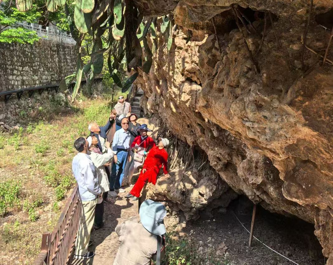 沿途有诗碑廊,一些文人墨客诗作“界魚石”的种种联想使我对野牛山耸隔抚仙湖、星云湖的传奇带上更多诗意赞叹。途中何宣还给我们“科普”了《星云湖、抚仙湖出流改道工程》,可惜现在还是“半截子”工程,人定胜天是要有科学依据的。沿途走走、看看、说说、笑笑很是轻松。大自然的神奇、旅游人的欢快就在这样的交融间至美至乐。
