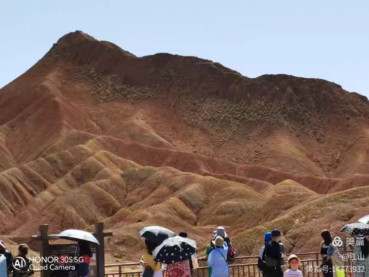 上午我们来到七彩丹霞地质公园,遇上晴空万里,阳光高照,更彰显出丹霞地貌的五彩缤纷,惊艳无比,真的好像上帝打翻了她的调色板,全都撒在了这里,使得这里成为最美丹霞地貌。于是这里也就成为了游客,特别是摄影爱好者趋之若鹜的旅游胜地。 为了让游客更好的欣赏多姿多彩的丹霞地貌,景区安排了直升飞机在上空盘旋浏览,还有热气球升空观赏,大多数游客看见价格不菲,也只能望洋兴叹,只有“土豪”才会上天去享受这别样的风景。 下午坐了五个小时的车程,到了平山湖大峡谷,顾名思义,平山湖应该有山有水,更应该是青山绿水,可是去了一看,山是有,水却无,真的让我百思不得其解,这个鸟不拉屎地方,寸草不生的不毛之地怎么就取了个平山湖的美名呢? 虽然没有水,但是也值得一游,大峡谷山峰全是单一紫红色泥土,与七彩丹霞五彩斑斓的景观截然不同,山峰呈奇形怪状,峡谷陡峭,别有一番景致。据说平湖山大峡谷可以比肩张家界,媲美美国的科罗拉多大峡谷,不过笔者没有去过那里,不敢妄议。 两个神奇的国家地质公园,各具特色,各有千秋。地大物博的中华大地有着千姿百态的美景也是咱老百姓的福气,趁着还走得动,那就出发吧! 踏遍青山人未老,风景这边独好!