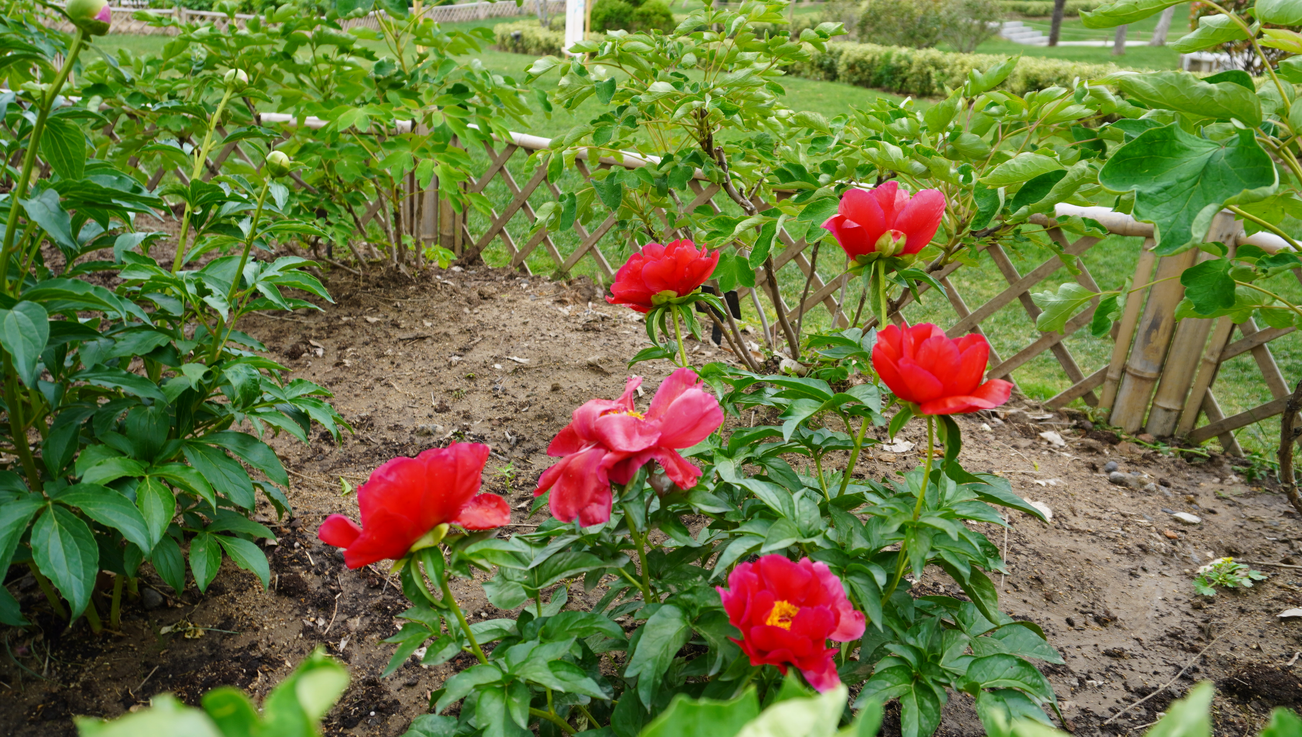 绿掩重楼啼鸟脆, 周山松竹青苍。 时花异卉满园芳。 杜鹃红似火, 桃艳乱飘香。