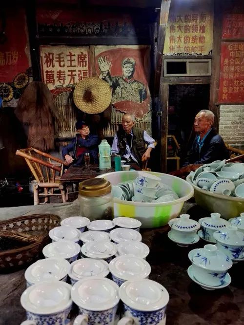这一切,尽管蕴含着某些刻意,但氛围感拉满,便让人自然而然地陶醉其中。拍拍照喝喝茶,我脑海里天马行空,想象着从前不同时代茶客们的种种模样:有穿着长袍马褂的、一脚泥土的、手捧宝书的……哦,他们如此用心保留的,岂只一个年代的记忆,还有当地人世代流传的生活方式啊!心头一热,赶紧的,放下茶碗揭开镜头盖,继续……