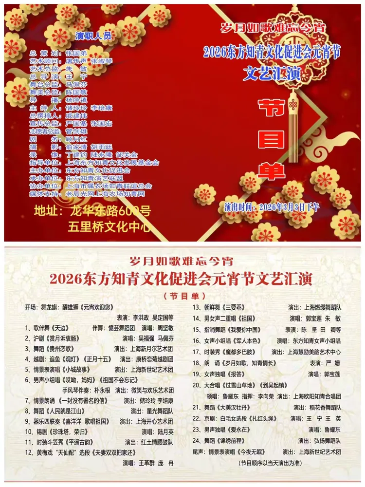 ![]() 沁园春 元宵节知青欢聚 张国洪 灯火元宵,汇演知青,集聚馨园。 忆边陲岁久,锄云种月;荒郊路远,踏雪披烟。 霜鬓重斟,推杯换盏,歌舞樽前兴浩然。 凝眸处,有烛光摇曳,笑靥生莲。 今朝双喜相连,更晩宴、同开寿席筵。 看糕推锦绣,声飞梁栋;语倾祝福,情满山川。 暖意融融,患难情谊,总在相逢一笑间。 良辰美,愿长如此景,永驻心田。 ![]() 灯火映元宵,情谊暖人心。2026年元宵佳节,东方知青文化促进会元宵节晚宴在宜山路馨乐园温情启幕。来自各艺术团体的百五十位知青朋友欢聚一堂,以歌寄情、以酒言欢,在团圆的灯火里,共赴一场跨越岁月的重逢之约。 晚宴由熊诗珍、管剑雄联袂主持,沉稳而亲切的开场白,瞬间拉近了彼此的距离。舞台总监马佩芬首先登台,深情转达张国弟会长对全体知青朋友的诚挚谢意与元宵佳节的美好祝福。一句句问候,饱含着对知青群体的牵挂;一声声祝愿,凝聚着对岁月同行的珍视。随后,张国弟会长的老战友狄龙登台致辞,话语间满是岁月沉淀的深情,忆往昔峥嵘岁月,话今朝情谊绵长,真挚的感言与祝福,打动了在场每一位老友,掌声经久不息。 更添暖意的是,今夜恰逢本次活动协办方——上海市属农场知青联谊总会李凤吾会长的生日。全场在主持人的提议下,在《生日快乐》的音乐声中,一个精心准备的特制生日蛋糕缓缓推上舞台,为这场元宵团圆宴,平添了一份意外的温情与惊喜。烛光点点,映着满场真诚的笑脸,大家不约而同地起身,齐声唱响生日歌,歌声真挚而热烈,饱含着知青兄弟间最朴素的祝福。李凤吾会长在掌声与祝福中许下心愿,这一刻,元宵的团圆与生日的喜悦相融,知青情谊在温暖的仪式中愈发醇厚。 馨乐园内,暖意融融。佳肴飘香,酒杯轻碰,推杯换盏间,是久别重逢的欣喜,是岁月沉淀的默契。知青朋友们围坐一席,谈过往、话今朝,那些扎根乡土的青春记忆,那些风雨同舟的患难情谊,在笑语中缓缓流淌。各艺术团体的老友们更是兴致盎然,载歌载舞,用嘹亮的歌声、灵动的舞姿,诉说着对生活的热爱,演绎着知青人永不褪色的风采。歌声与笑声交织,温情与暖意相融,没有生疏的隔阂,只有家人般的亲切。 岁月如歌,青春无悔;今宵难忘,情谊长存。从青葱少年到鬓染霜华,知青二字,是刻在骨子里的印记,是融在血脉里的情缘。这场元宵晚宴,不仅是节日的团圆,更是岁月的重逢,是一代人精神与情谊的相守。 夜色渐浓,欢歌未歇。百五十人同聚,共品佳肴、共话情谊、共庆佳节,在馨乐园的温馨氛围里,度过了一个难忘而美好的元宵之夜。今宵的歌声与欢笑,将化作岁月里的温暖印记,镌刻在每一位知青朋友的心中;这份跨越时光的知青情,亦如陈年老酒,历久弥香,岁岁绵长。 以下是晚宴开始 ![]() 主持人:熊诗珍、管剑雄 ![]() 舞台总监马佩芬转达了张国弟会长的谢意和祝福。 元宵佳节演出圆满成功,致敬每一位默默付出的你 元宵佳节,灯火璀璨,五里桥文化活动中心的文艺演出圆满落下帷幕。现场掌声阵阵、暖意融融,每一份精彩与感动,都离不开全体人员的同心协力、辛苦付出。 一场成功的演出,既有台前意气风发、深情演绎的表演者,也有幕后默默坚守、细致周全的工作人员。从精心筹备、反复排练,到现场调度、秩序维护,大家不计辛劳、全力以赴,用责任与热爱撑起了整场演出的顺利运转。 正是这份无私的坚守与并肩的默契,让元宵之夜格外温暖,让文艺之光格外动人。衷心感谢每一位台前幕后的参与者、奉献者,感谢大家的全力以赴与默默守护! 愿我们同心同行、在张会长的带领下,再接再厉,未来共创更多美好时刻! 马佩芬 ![]() 张国弟会长的老战友狄龙登台致辞 ![]() ![]() 上海市属农场知青总会李凤吾会长的生日 ![]() ![]() ![]() ![]() ![]() ![]() ![]() (责任编辑:铁滨) (责任编辑:铁滨) |