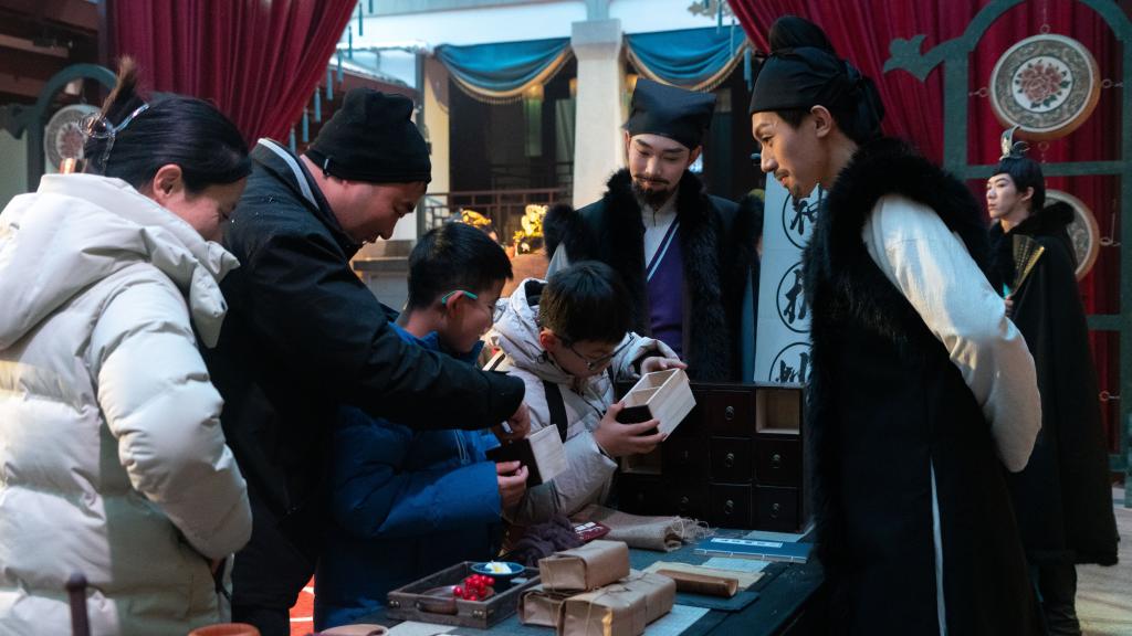 游客在知音殿的古风市集体验。新华社记者 熊翔鹤 摄