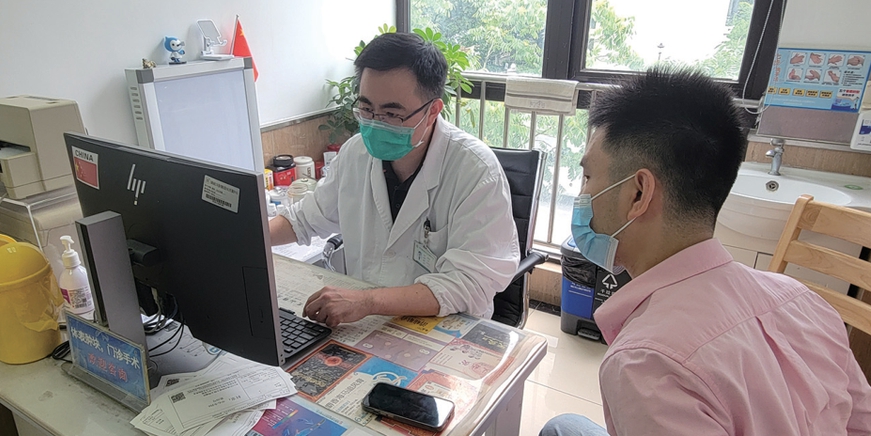 ![]() 虹口区嘉兴路街道社区卫生服务中心外科医生曹锦峰在为患者看诊。 (受访者供图) ![]()