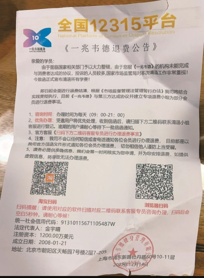 《一兆韦德退费公告》有多处语病和标点错误,十分粗糙。 师梦娇 摄