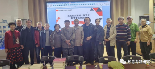 4月14日下午2时,他们在苏州知青文化研究会名誉会长、苏州•蒋巷知青馆馆长钟慎明和中知网南京联络站站长吴青生的驾车陪伴下,终于到达旅途的最后一站——上海,受邀出席在这里举行的“各地知青学术交流座谈会”。 在上海社会科学院瑰丽的图书馆,座谈会由上海市知识青年历史文化研究会顾问张刚主持。岳建一、马波一行饶有兴趣观看研究会宣传视频《十年耕耘 筚路蓝缕(庆贺片)》《知青老照片总结会》《知青馆走进博博会》《上海知青文献库揭牌仪式》。