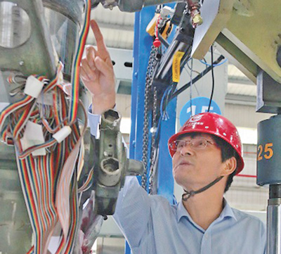 ![]() 王彬文(左二)在和团队成员探讨智能起落架设计细节。 以上图片均为本报记者龚仕建摄