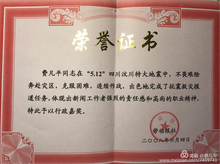 我是一名受益者,别人受灾,我却获了奖。这个奖很沉很沉