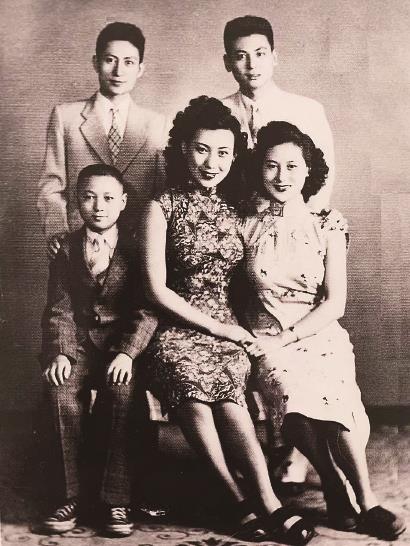 童氏兄妹(前排左起:童祥苓,童芷苓,童葆苓。后排左起:童寿苓,童侠苓。)
