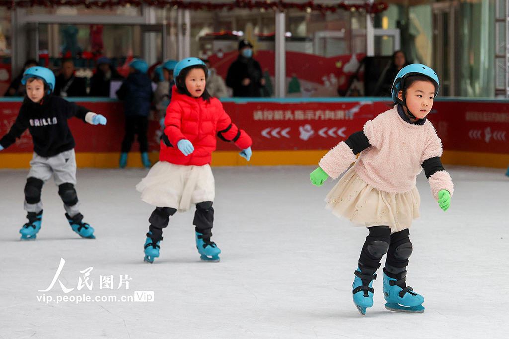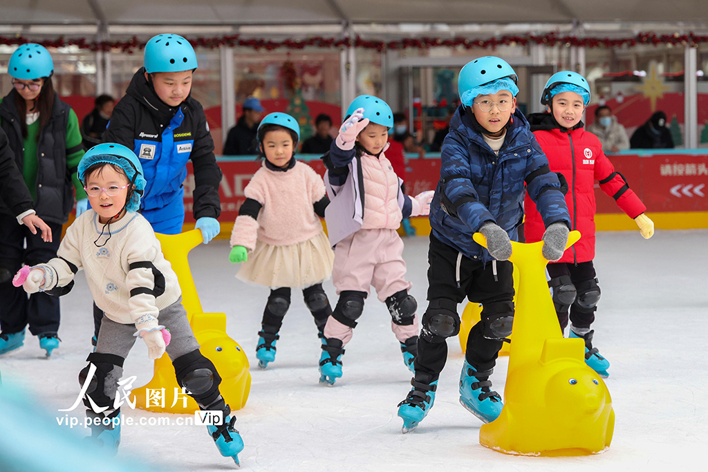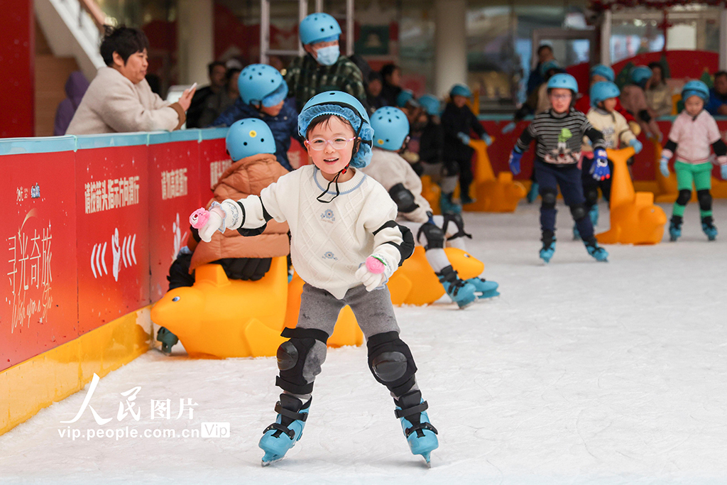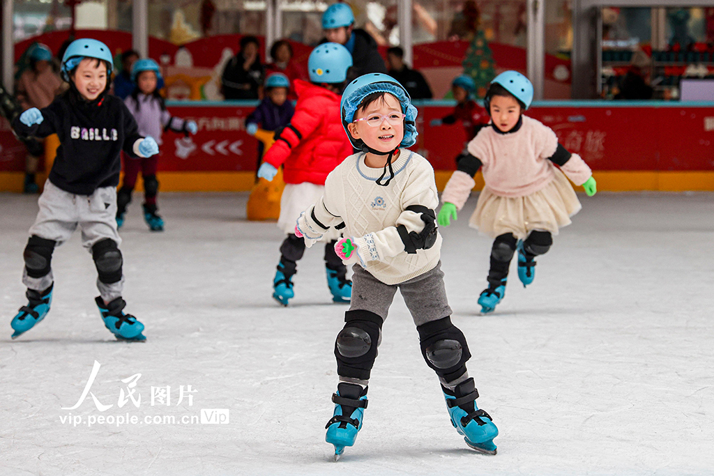 2025年1月23日,在上海市静安区的一家冰场,小朋友们正在体验滑冰的乐趣。随着寒假的到来,许多小朋友选择来到冰场游玩,体验冰上运动的魅力,享受一个充满活力的假期。王初摄(人民图片网)