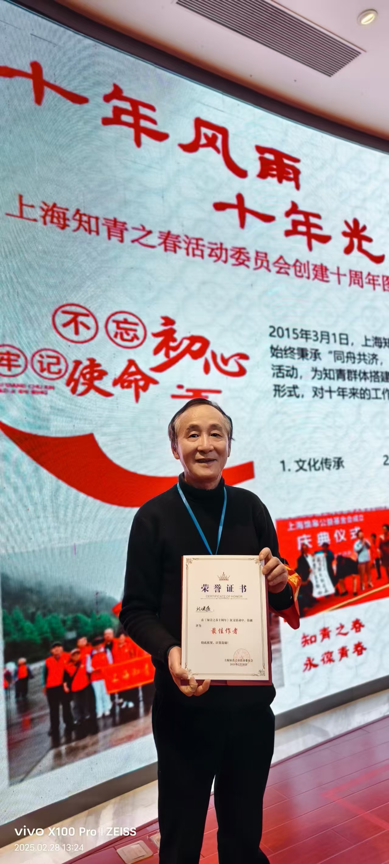 同样令人欣喜的,是为《知青之春十周年》征文的创作者们颁奖的瞬间。最佳作者、优秀作者们手捧荣誉证书,见证了与"上海之春"团队一同走过的十年岁月,他们用文字在时光的素笺上耕耘,那些或激昂、或温婉、或深沉的笔触,得到了大家的共鸣,也让大家收获了游走文字间的愉悦快乐。