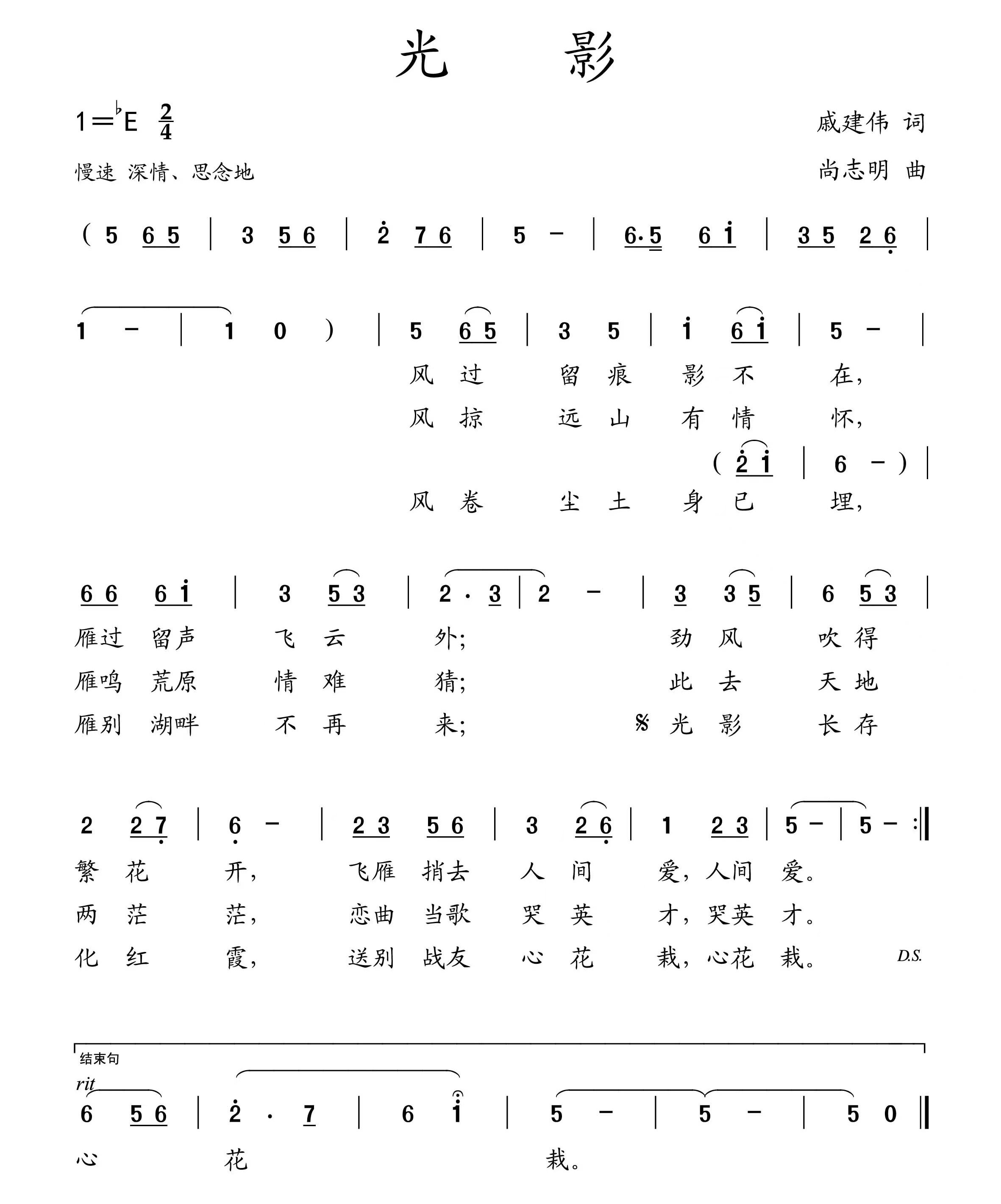 以上是黑土情缘上海知青红娘志愿团艺术团(大地艺术团)戚建伟作词,尚志明作曲,上海师范大学音乐学院潘幽燕演唱,崇明农场知青(上海美术电影制片厂作曲家王新生)制作交响音乐伴奏的追思翁德坤的歌曲《光影》。演唱潘幽燕,东京艺术大学声乐硕士学位,抒情女高音歌唱家,上海师范大学音乐学院教授,上海音乐家协会声乐专业委员会会员。潘幽燕自1996年至2022年获众多的奖项,受到党和国家三代最高领导人的亲切接见。