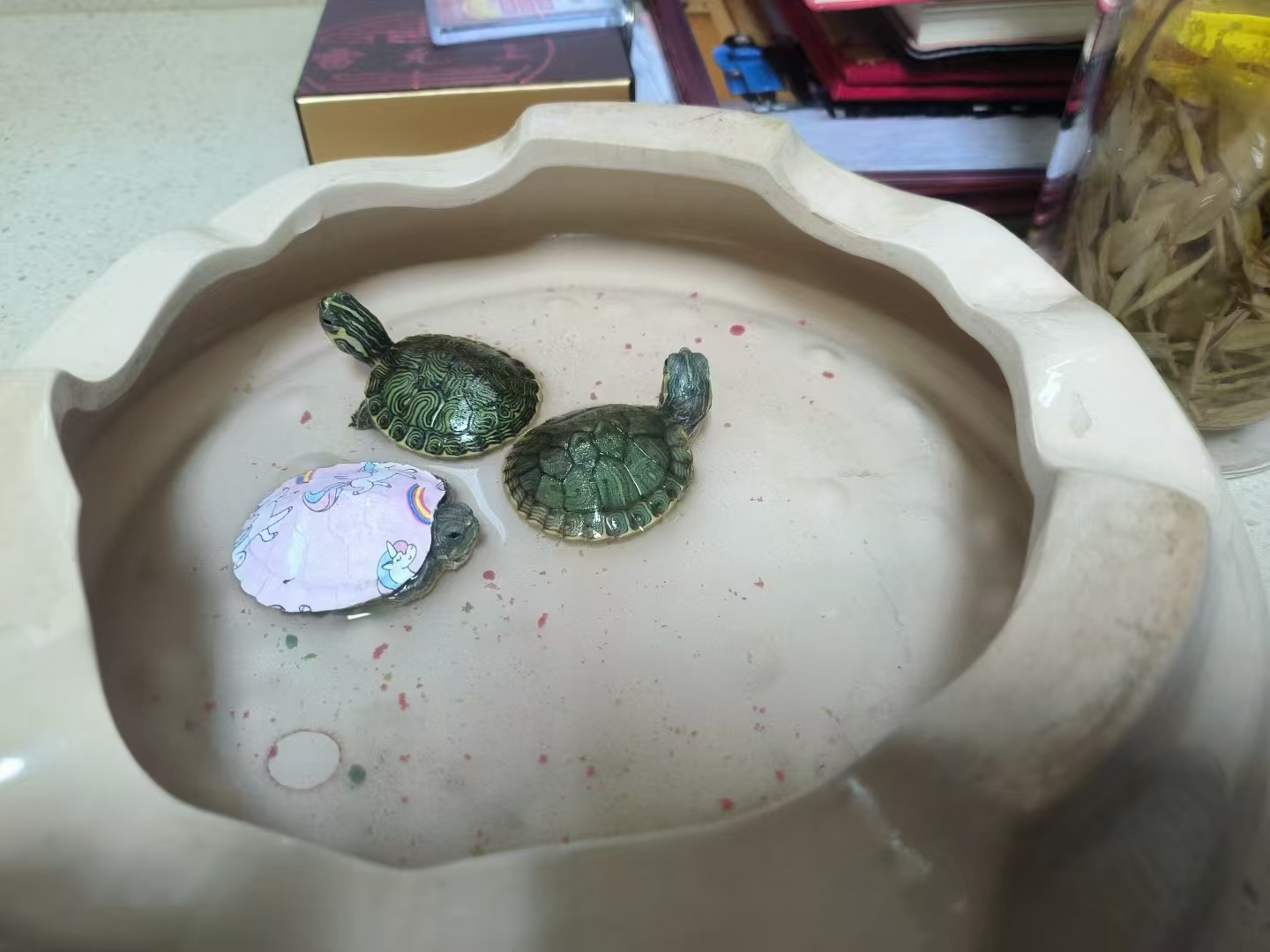 更有那绕膝的童趣添彩,陪着娃的兴趣而辗转。那鱼缸里的鱼儿的几迭变幻,一直伴着他长大,看小金鱼摇曳着斑斓裙摆穿梭于水草间,似是水中舞动的虹;瞧小乌龟慢悠悠探出脑袋,憨态可掬爬行,每一步都丈量着童真的慢时光,孩子的快乐也便成了我的快乐。