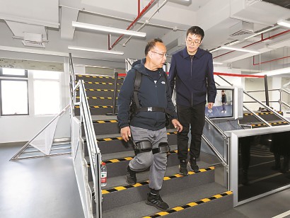 近日,70岁的胡先生走进位于中国电科21所的“上海市特种机器人创新中心”。这位爱好旅游、常出远门的退休老人,穿上助老型外骨骼机器人,从步行到登梯一一试用。 受访者供图