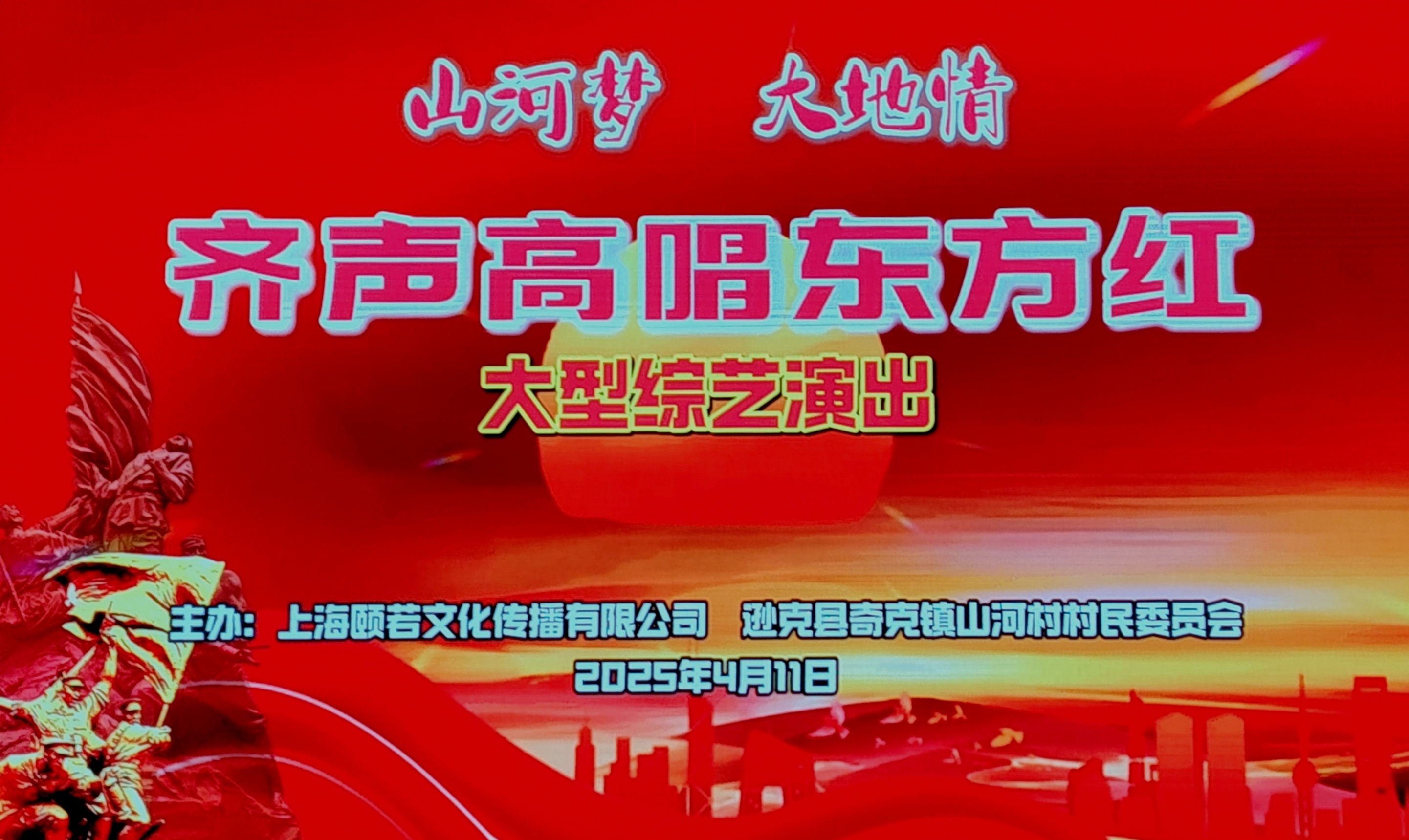 为丰富知青群体及退休人员的精神文化生活,传承红色精神,2025 年 4 月 11 日下午 13:30,一场名为《山河梦 大地情 齐声高唱东方红》的大型综艺演出在全新的宛平剧场盛大启幕。现场气氛热烈,千余名观众共同沉浸在这场视听盛宴之中。