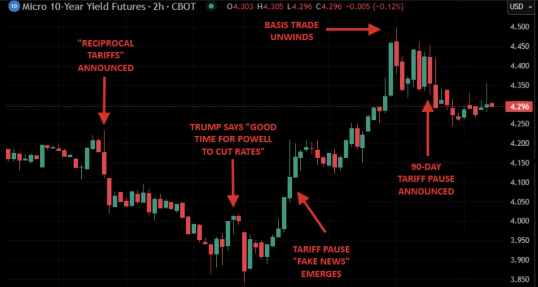 紧接着,12小时后,特朗普第一次让步实施了为期90天的关税暂停,但随后,美国国债在短暂的反弹后继续遭遇抛售的关键时刻,市场上又传出一则特朗普第二次让步,将对半导体和电子产品的进行豁免政策的消息。