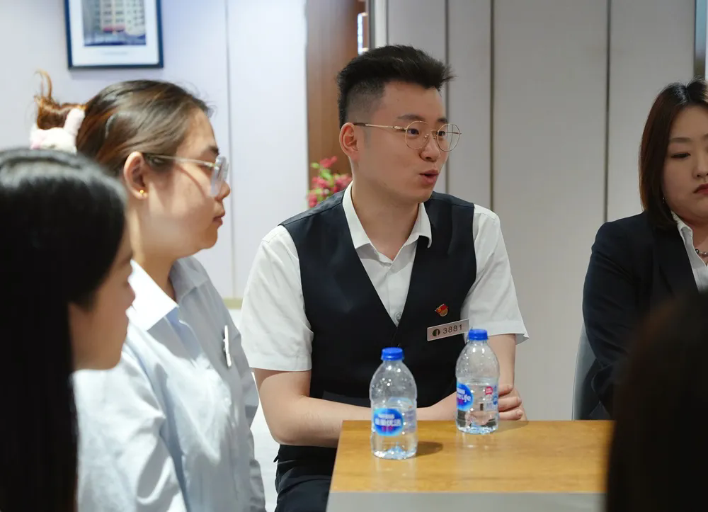 青年员工们深受鼓舞,纷纷踊跃发言。李玥表示要继续向朱雯瑾师傅学习,把劳模精神融入日常服务。劳模工作室成员王珏忆起与朱琳共事的宝贵时光,并向师傅汇报目前的工作情况,朱琳为王珏在工作中取得的进步倍感欣慰。