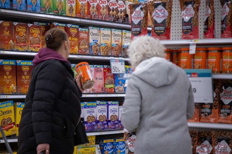 3月28日,顾客在美国纽约市一家超市选购杂货。(新华社发)