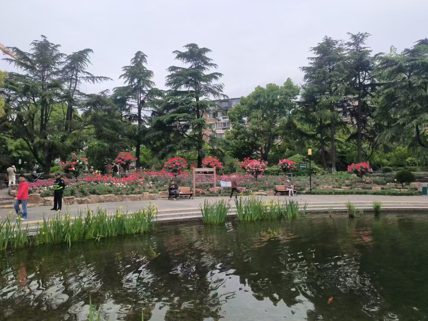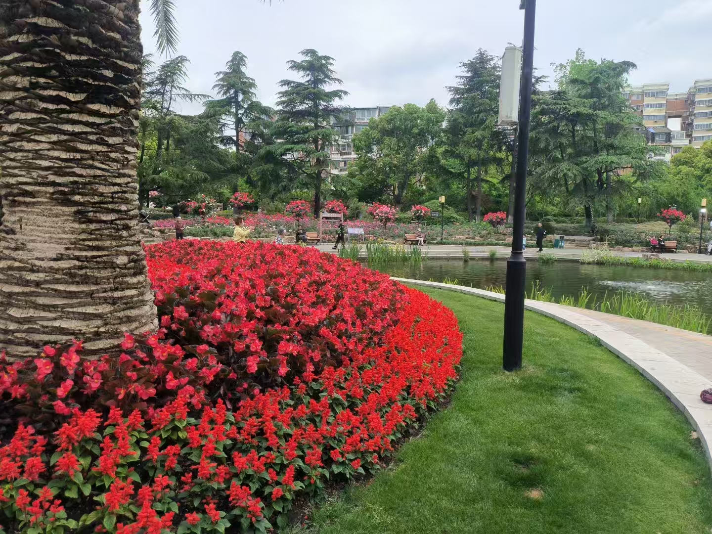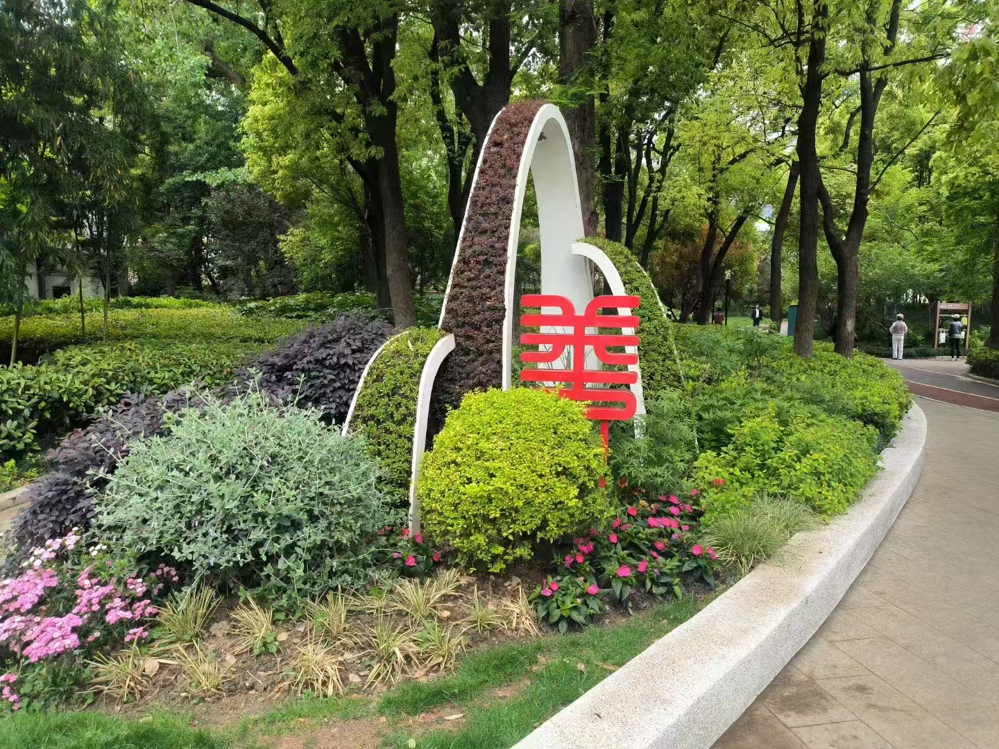 公园不算大,但春色正浓,各种花开错落有致,竞相盛开。