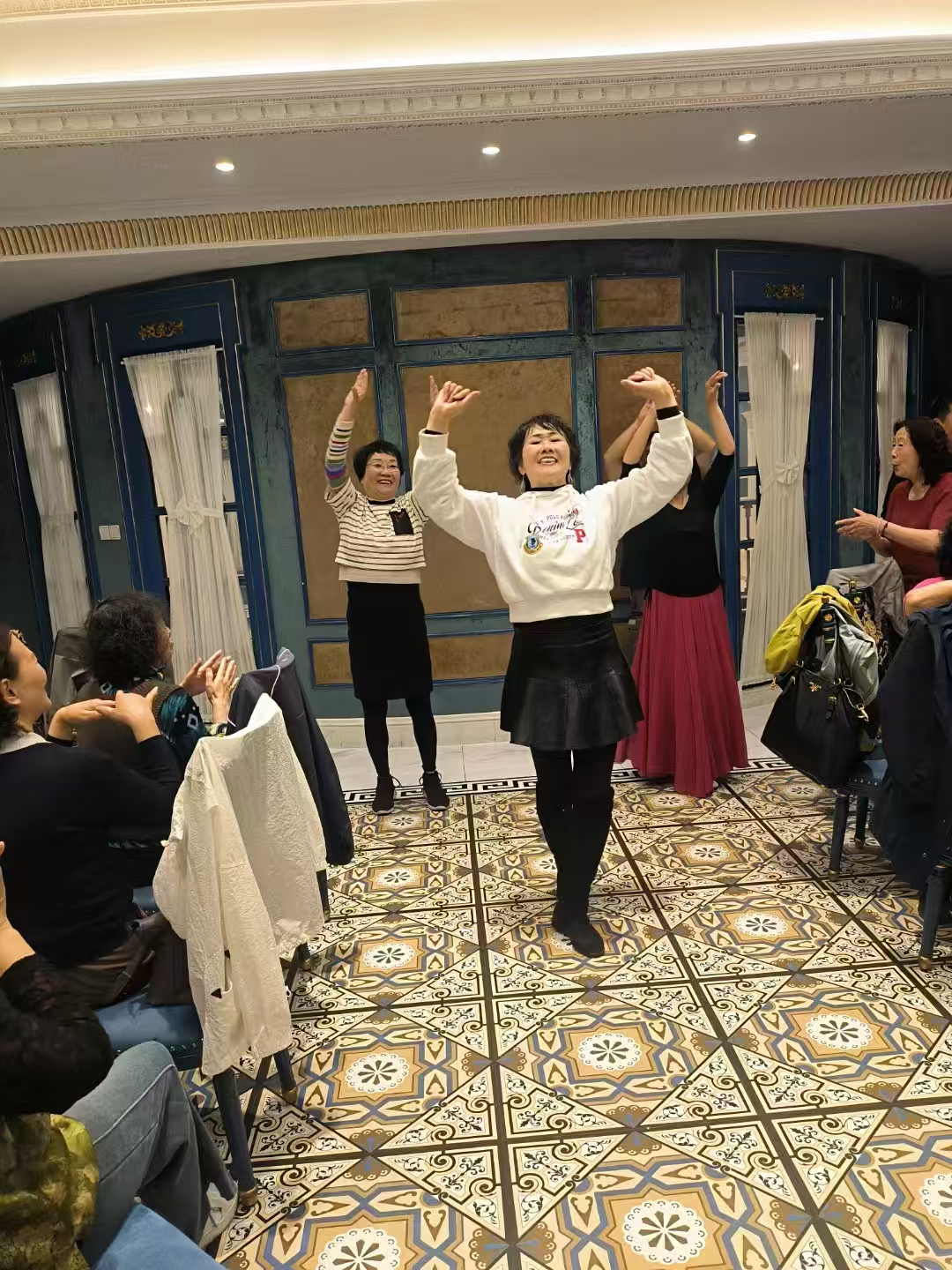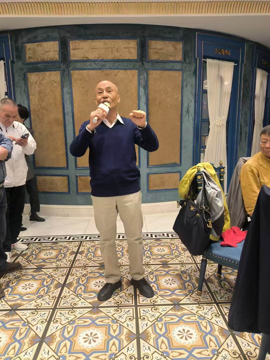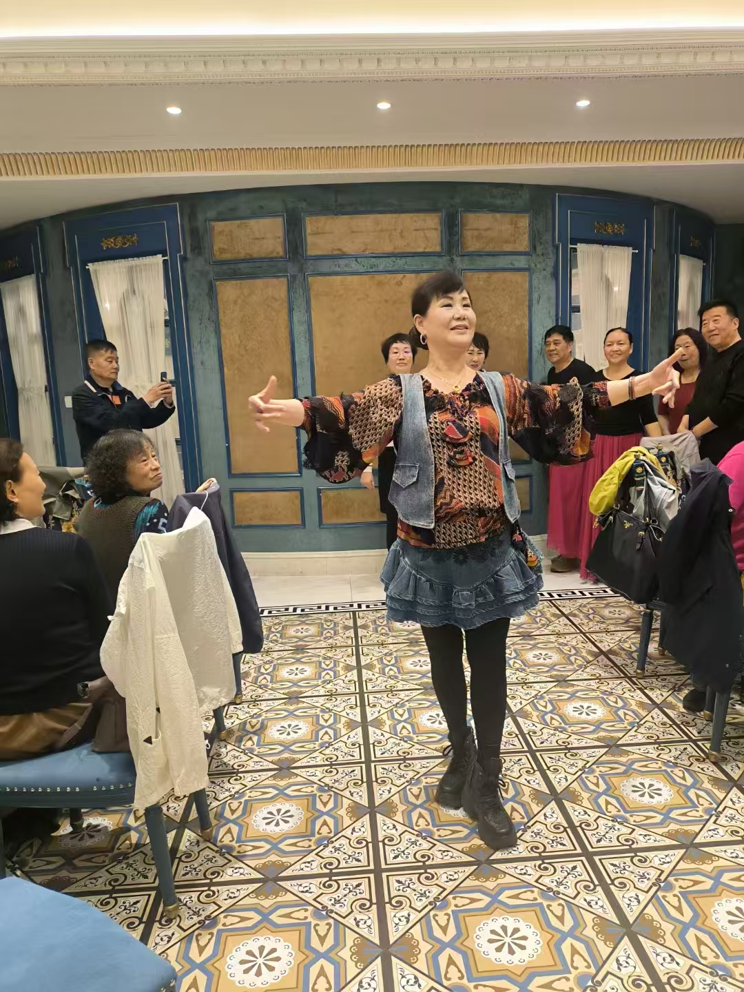 时隔多年,大家都到了七多八十的暮年,想唱想跳已经力不从心。团长召集50余人,相聚一起吃个"散伙饭",不由酸楚而不舍。目睹现场又跳又唱人人都是表演家的动人场景,可谓五味杂阵,那排练演出的一幕幕,仿佛就在昨天。一晃,我们真得老了,晚霞固然美,美在我们不老的心态,我们约定:人生路上继续尽朝晖。
