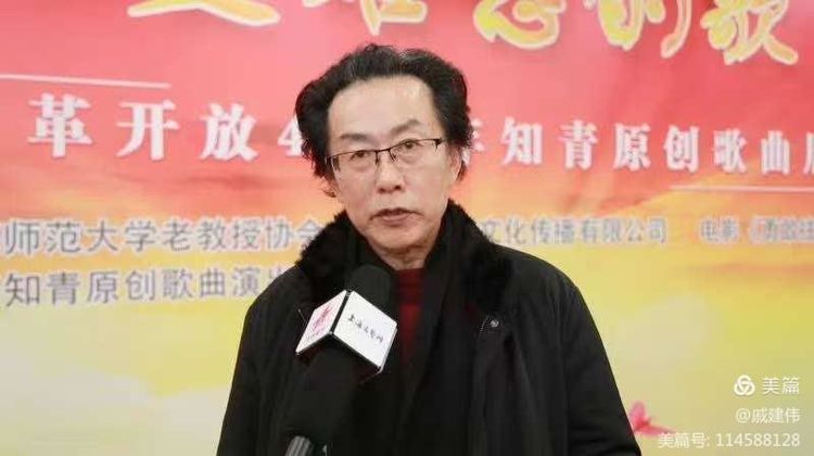 词作者戚建伟在纪念改革开放四十周年知青原创歌曲音乐会期间,在接受上海《文艺报》记者现场采访