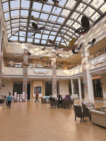 泰康之家·申园从地下一层到二层都是老人的活动区。